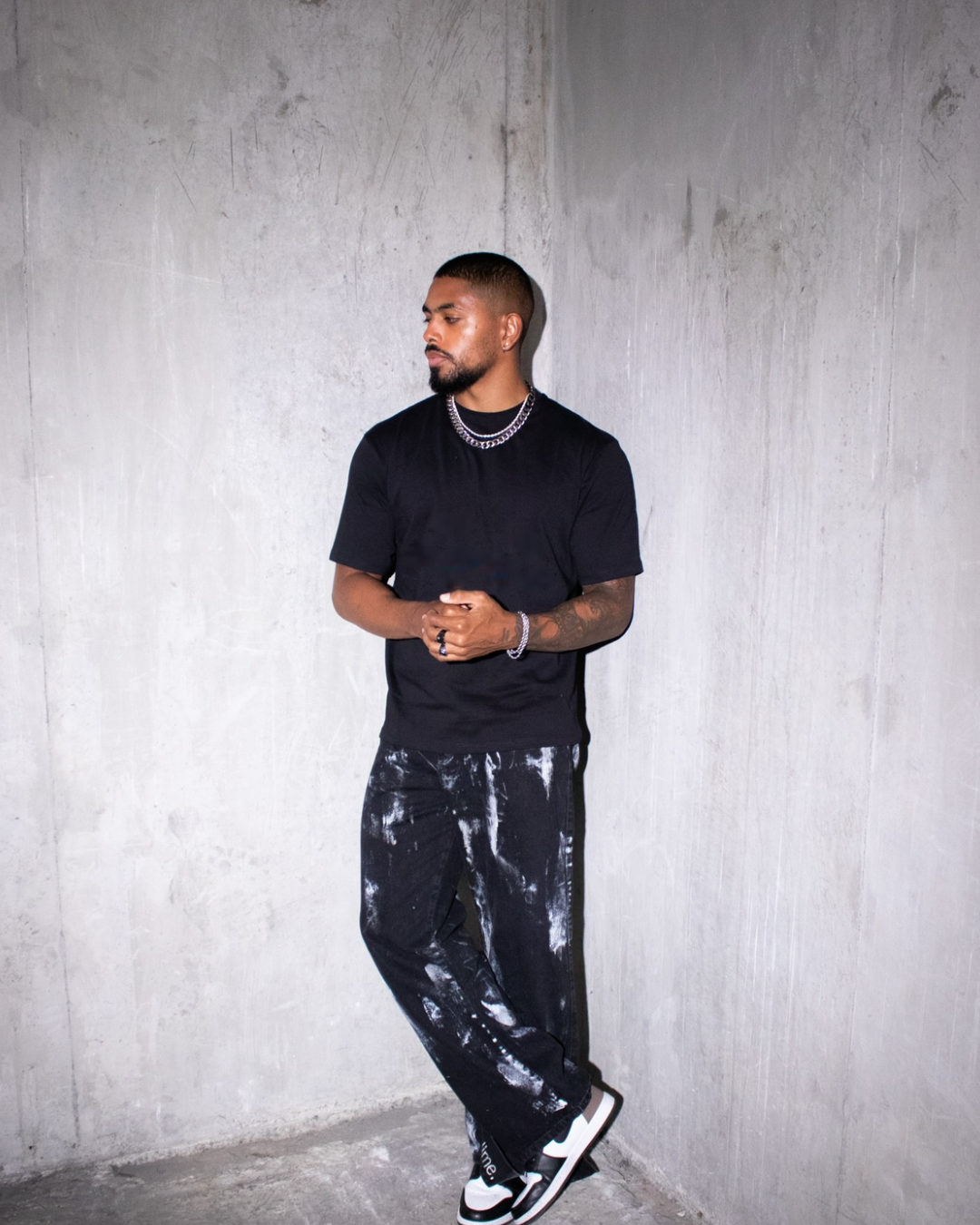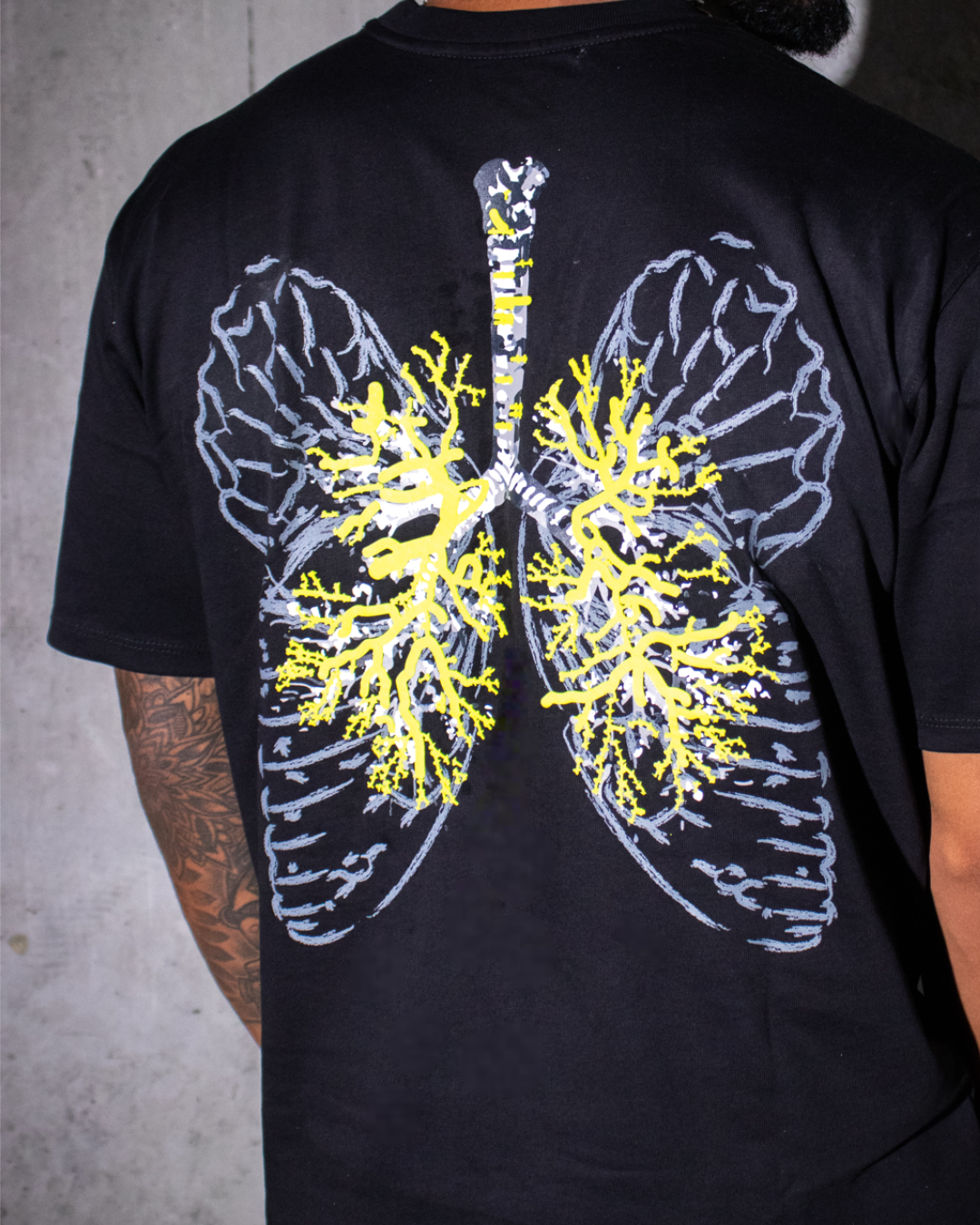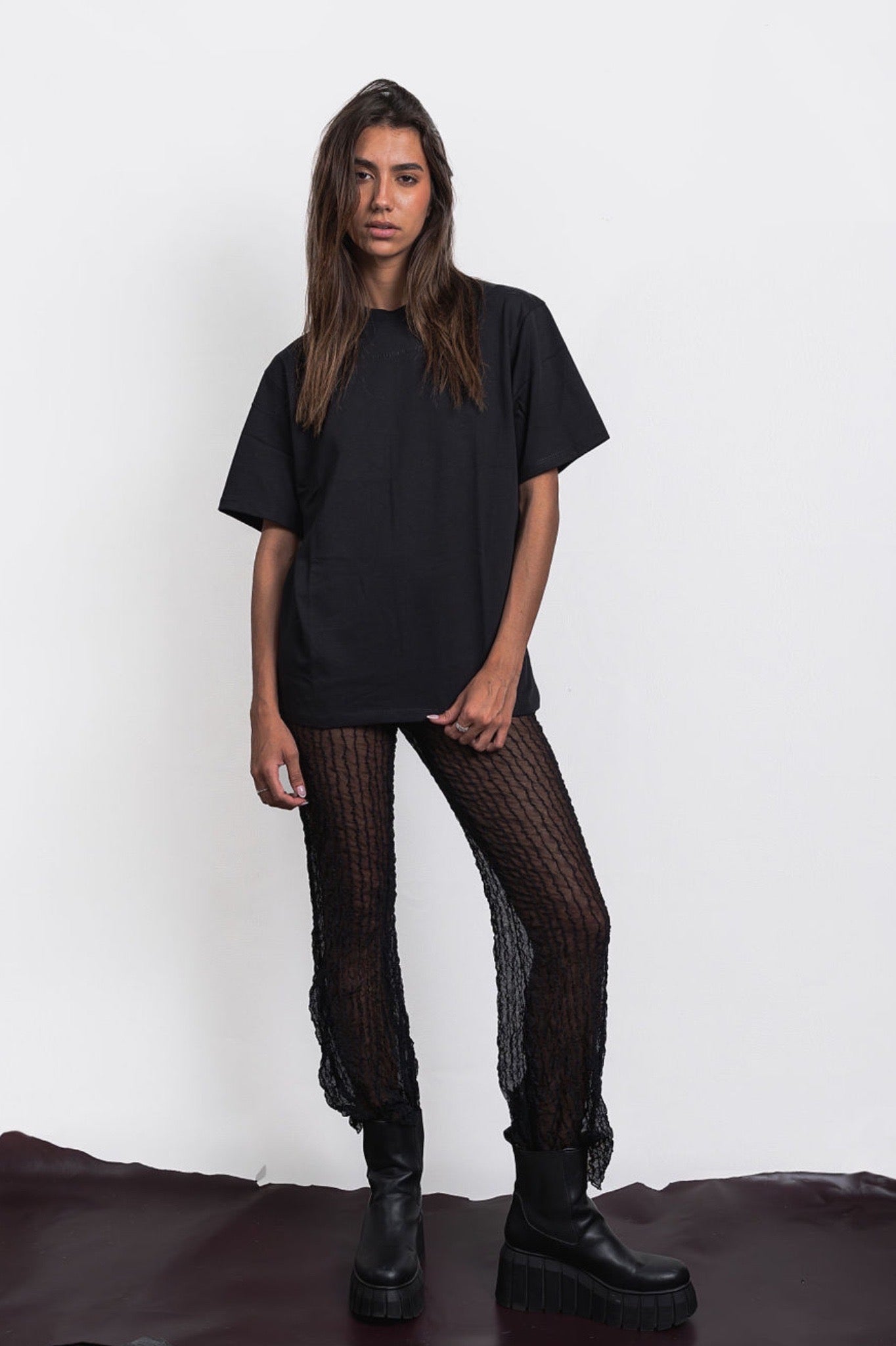 Black relaxed fit t-shirt made from 100% heavyweight Peruvian cotton. Its high-density print on the back and tone-on-tone logo will make you fall in love with this piece of art.