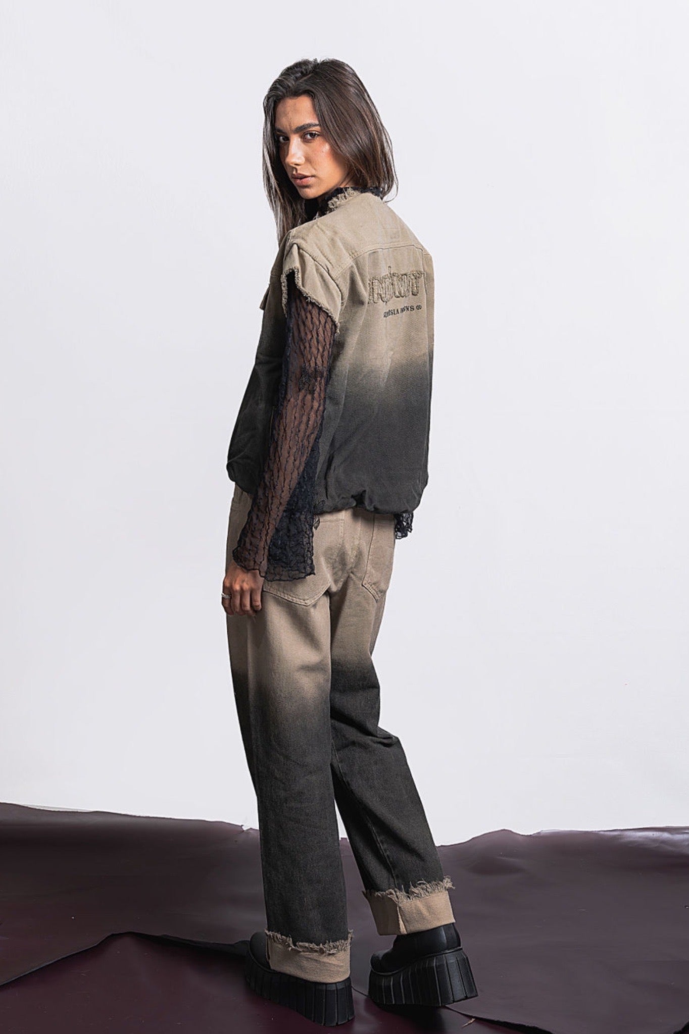 Unique details include a front zipper, laser-cut embroidery on the frayed back, and the word "Indómito" reflecting its rebellious spirit.